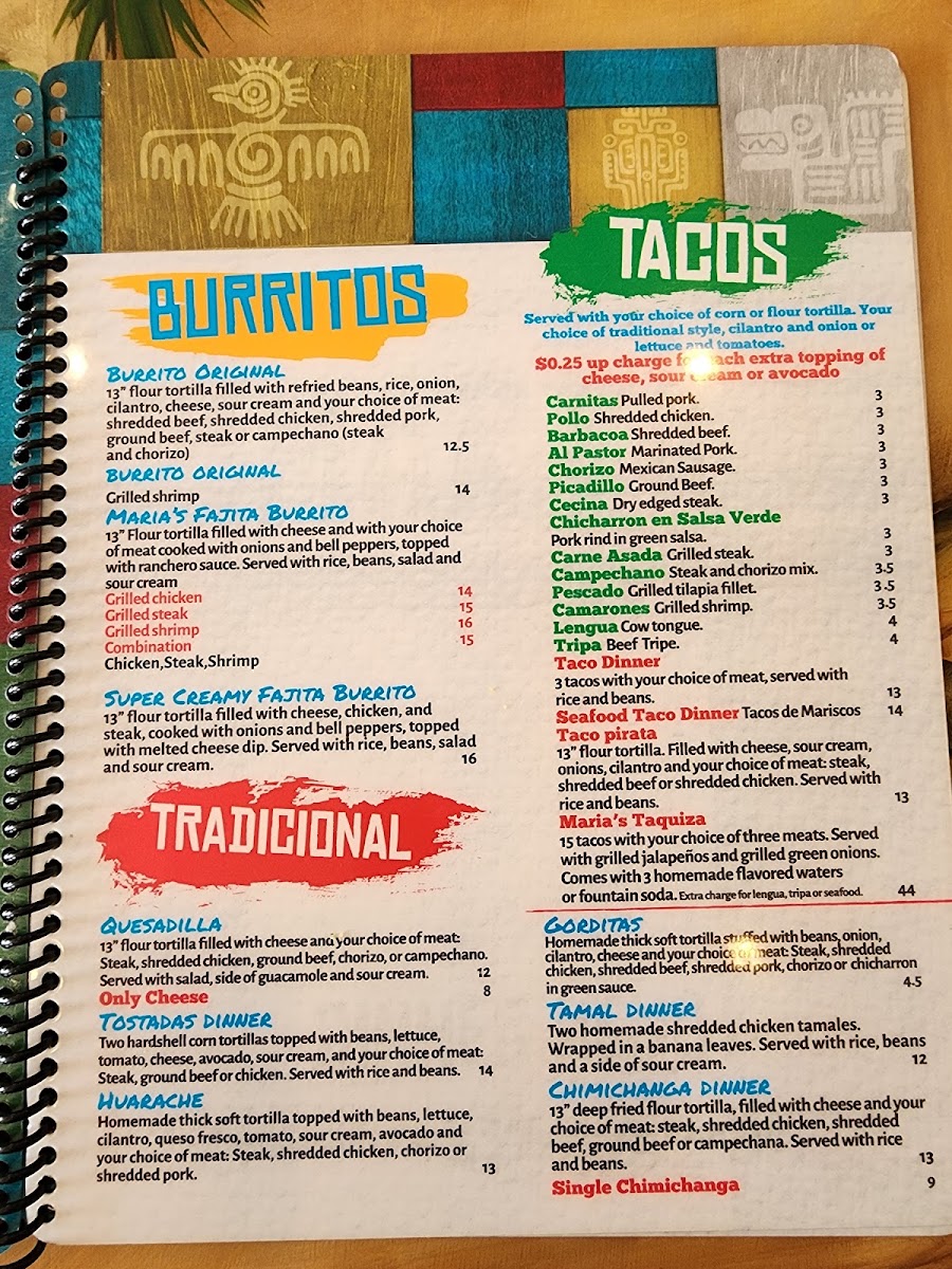 Taqueria Maria's Menu